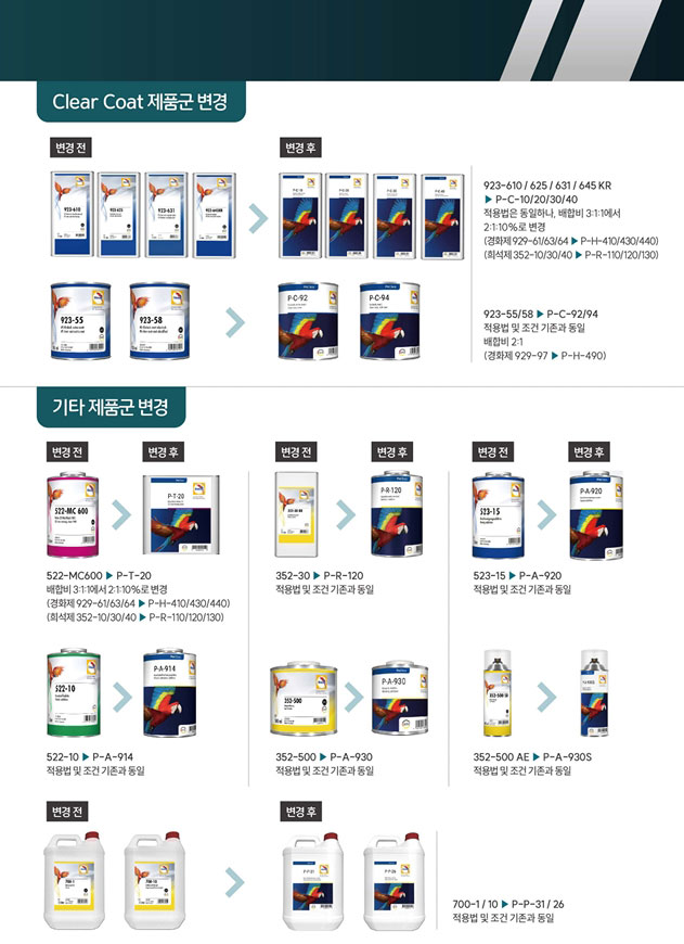 Glasurit 제품군 변경 내용 안내